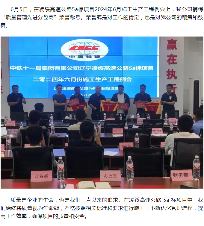 点赞!我公司获得“质量管理先进分包商”荣誉称号 2024.06.06 708 字号 A- A A+ 返回列表 上一篇 2024.06.24 水稳摊铺边部注浆机——新远建设匠心打造!为您的工程项目保驾护航 下一篇 2024.05.24 项目建设|梨东C1标项目AC-25粗粒式沥青混凝土下面层试验段顺利铺筑